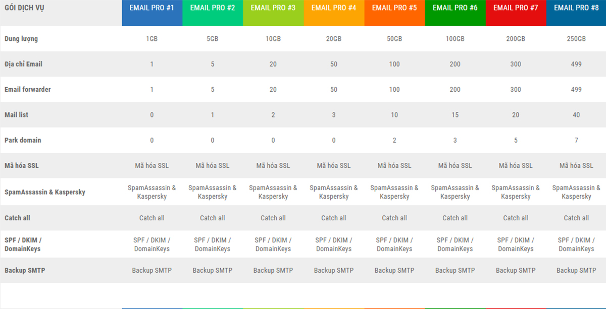 So sánh các dịch vụ Email